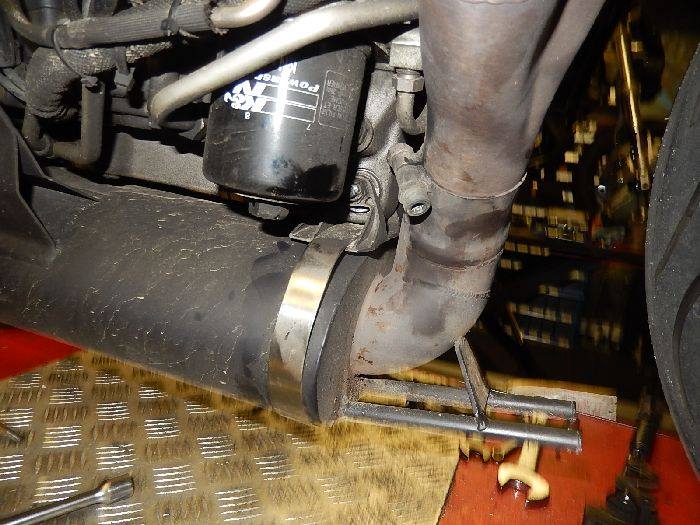 XB12S customizing , releasing the belt tension to remove the exhaust to get to the side stand bolts.