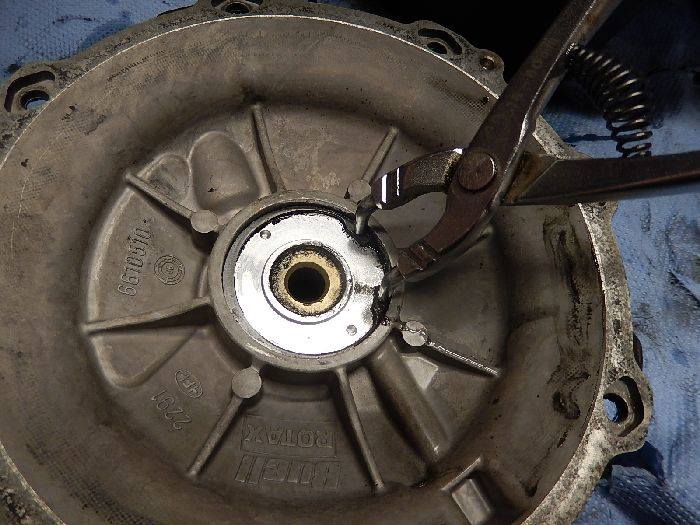 1125R leaking clutch , c-clip spanner remove the c-clip from the inside.