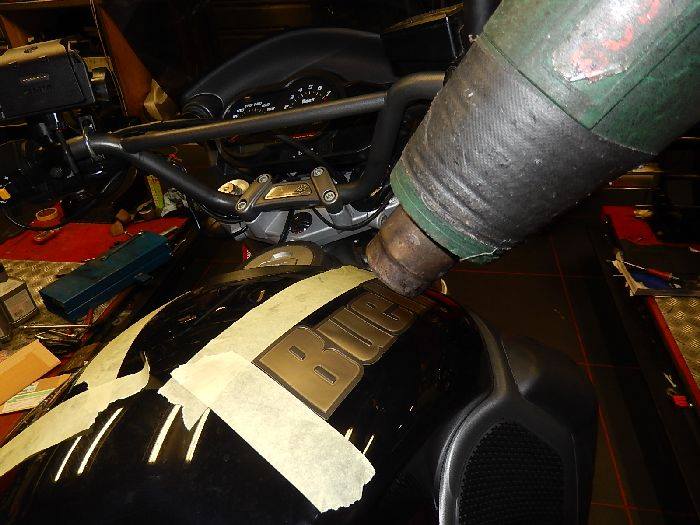 1125R mirror upgrade, bit off a trail and error to see it we could make this work, as no reall fitting adaptors are availeble , removing the 1 left mirror.