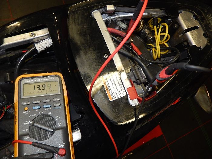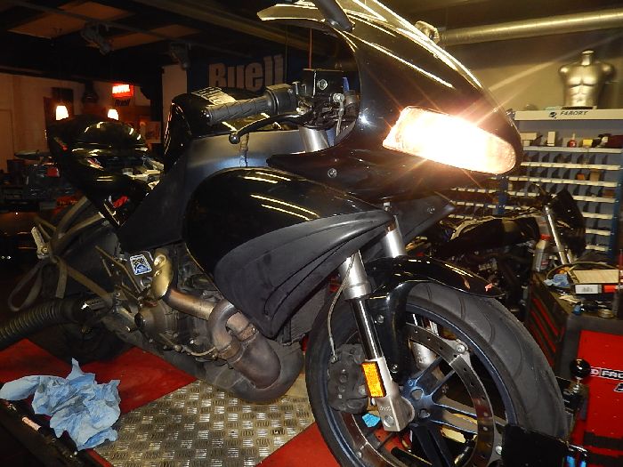 1125R service, as the battery was flat ? after a few days ? parking light ? checking the charging system, 2008 bike, no problems there.