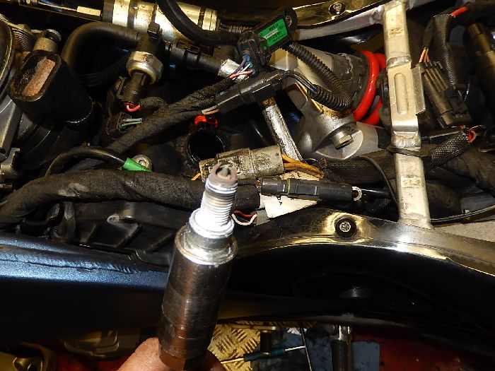 1125R service, you can tell from the plugs they have been running for 20 K, flatted out the center electrode, by spark erosion.