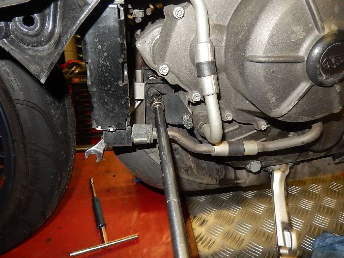 1125R service, loosen the clutch master cylinder, as the line is not long enough to drop the engine.