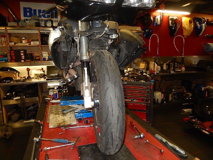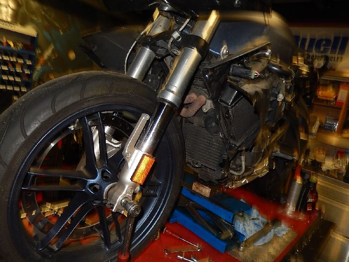 1125R service, new fork oil , protect the caps with some isolation tape not to damage the aluminium hex.