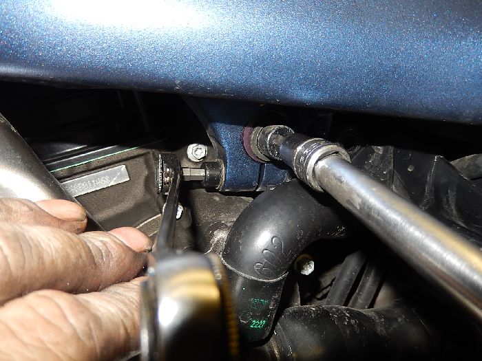 1125R service, a little flash light in the dark hole helps to see what your doing , loosen the horn / wires.