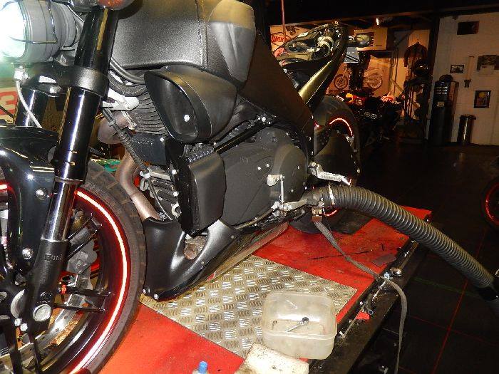 XB9 09 check up, heating up the bike to drain the engine oil.