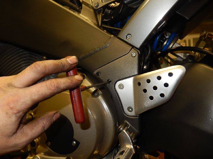 XB rought running, and S and R model for engine rotation the left foot peg bracket needs to be removed.