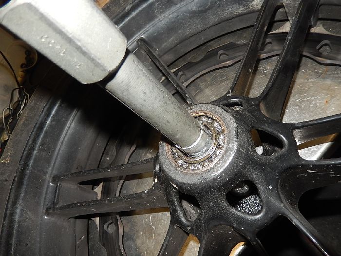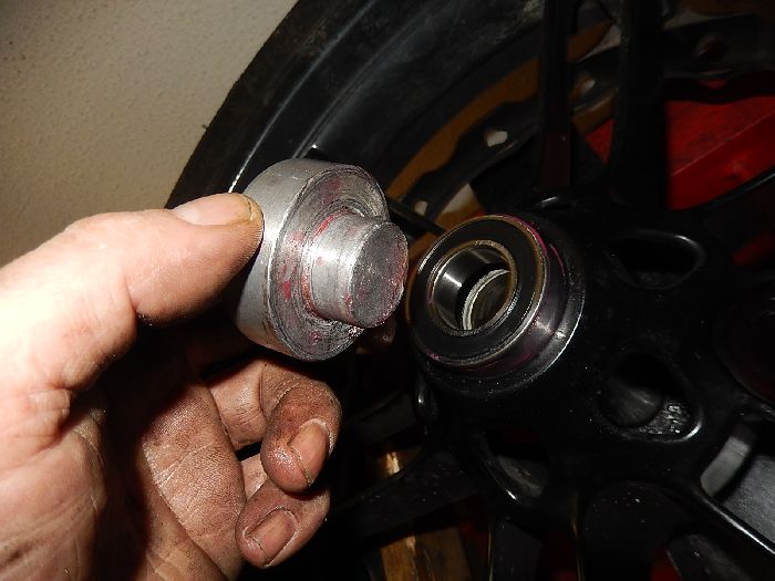 Uly time, with the die left in on the disk side and supported, spacer in press in the other side bearing again using a die witch supports the inner and outer race, this way you can not press in the bearing under to much tension.