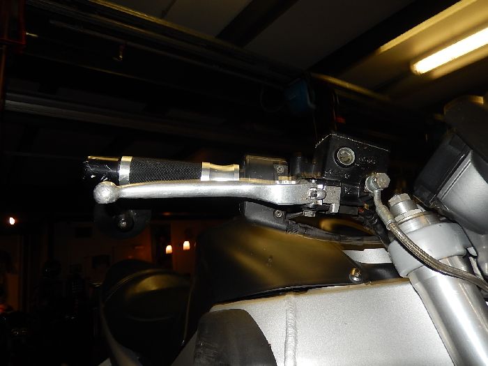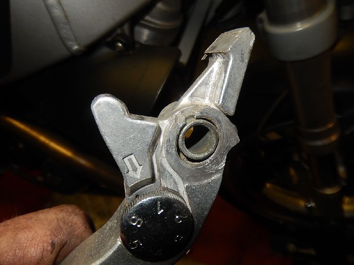XB9, customer wanted to have a look at the front brake lever, as he could pull it to the handle bar easy, and he could not get it better with bleeding, indeed feels a little mushie , but looking at the lever, looks bend.