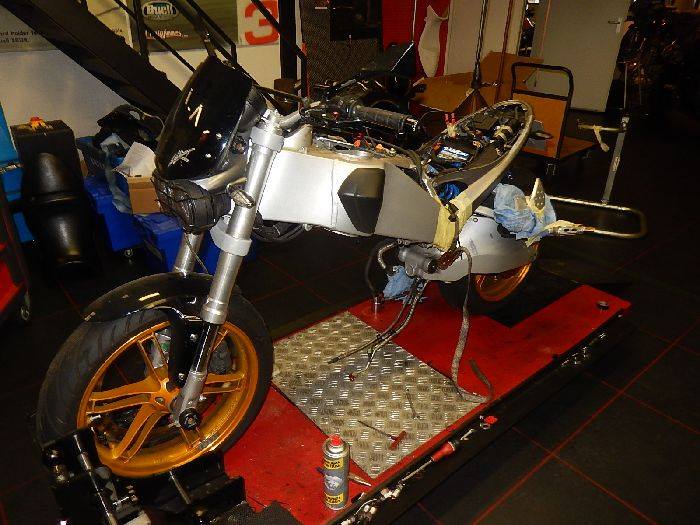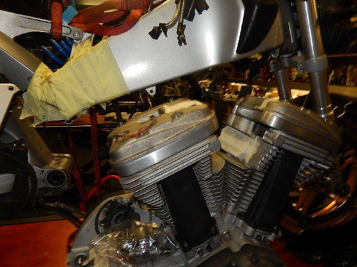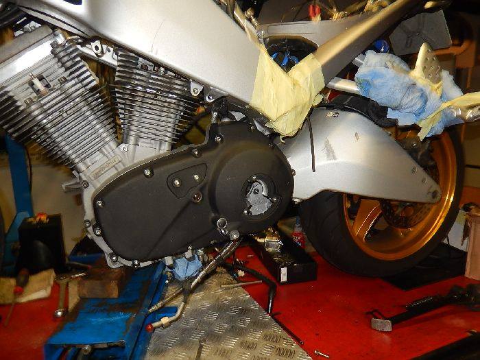 Xb Engine, witht he front and rear off the engine fixed, swing arm back in.