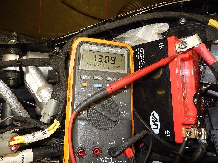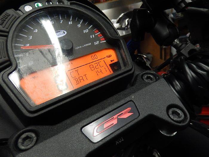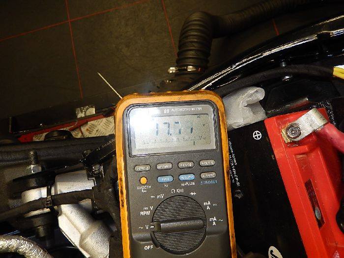 1125CR charging, when the bike is heating up and the fans kick in, the DC voltage drops.