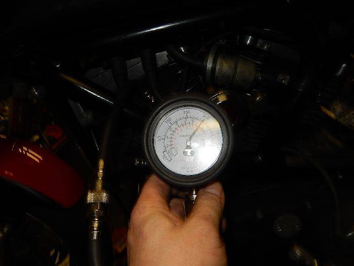 X1, in need of love,ok mechanics ok ? quick check with compression tester, front one very good. cold engine, after 8 turns.