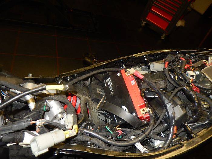 1125CR charging, short tails come with a free space probem, the HD wire harness patch relais mounted on the solinoid bracket.