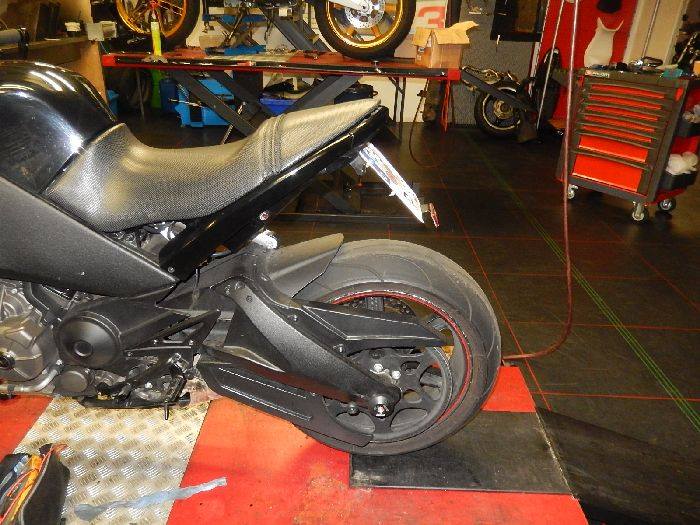 S3 racer, track timer bracket still on, as far forward as possible ( little illegal , as it should be mounted center off the bike, but if you need a wheel lenght to win , this will help )