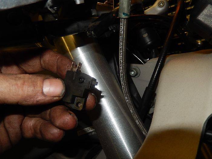 Xb startup, little check around on the bike, the brake lights don't work , hot wired the front connector, bulb works, switch is broken, remove the little screw under the brake.