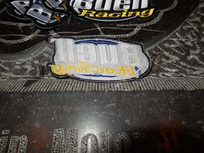 Small Buell Racing logo. size 90mm. can be put on when ironed hot has a glue back, Better is to stich it on. 100% Identical to the original patch (and a better quality)