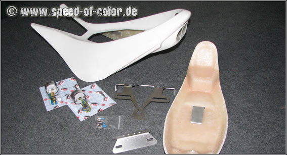 The specially designed for the S1 rear part fits without welding work on the original rear frame Buell, the rear frame must be shortened