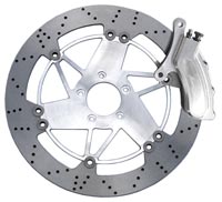 Direct fit, factory replacement discs, and front and rear calipers for Buell. Available as matched sets for left and right side, with no brackets or secondary hangers. As well as greatly improved braking power, the twin disc frontend upgrade corrects steering drift under hard braking.