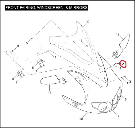 Buell, 10-32 x 5/8 button hex stainless steel screw for mountig the flyscreen and windscreen on the Buell XB 9/12 S,R,X and 1125 R models. Sold per piece.  Also used ( 3x ) for connecting the Big right airscoop to the inner piece an XB models