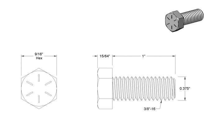 bolt, 3/8-16 X 1 hex hd. (zinc) ( 1x )