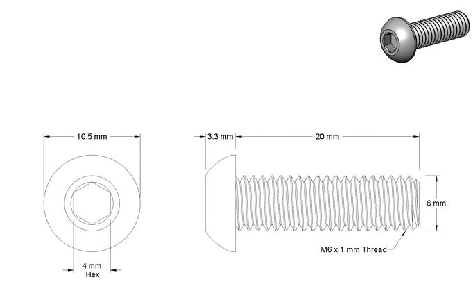 Buell, button head screw M6-1x20 Stainless steel ( 1x)