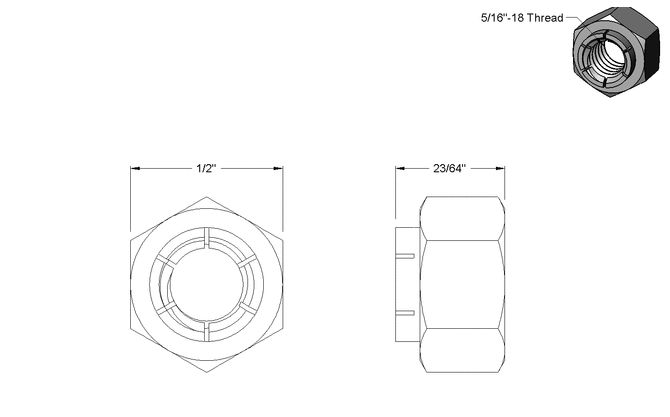Threads at the top of these locknuts expand to grip the bolt on all sides for a stronger hold than distorted-thread locknuts. The strength of the bolt should match the strength of the nut to prevent damaging threads. A cadmium plating provides corrosion resistance in wet environments and adds lubricity so they thread on smoothly.