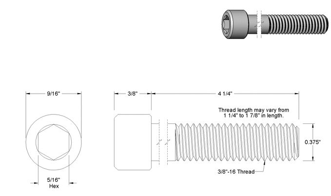 3/8-16 x 4 1/4 bolt socket head Black oxide
