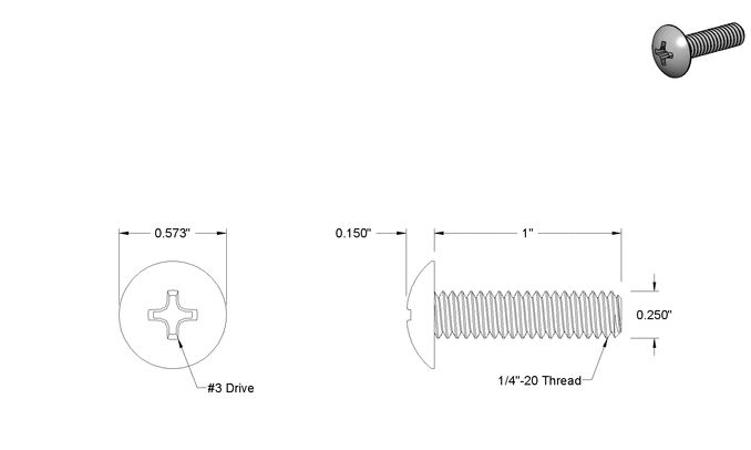 Stainless screw thrus head 1/4-20 x 1 ( x1 )