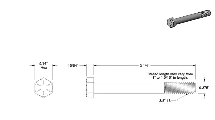 3/8"-16 Thread Size, 3-1/4" grade 8 zinc-alu coated ( x1 )