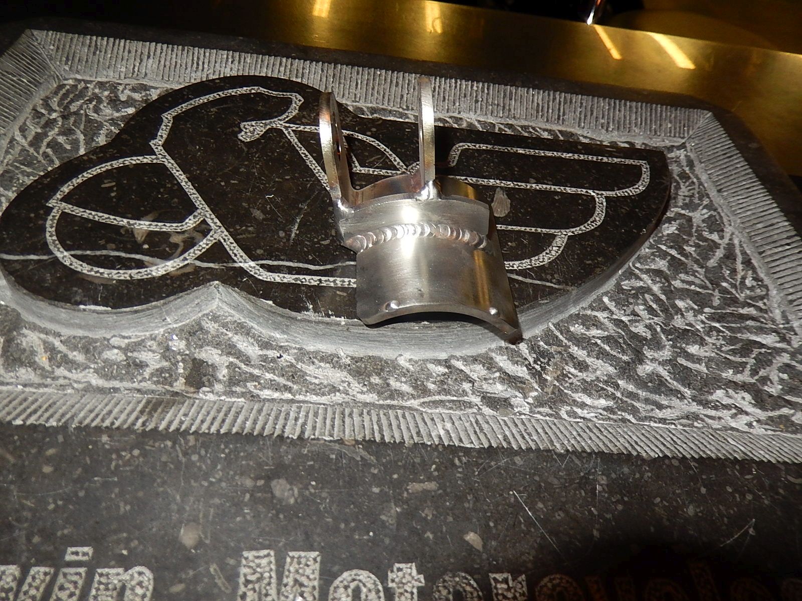 The Buell Pro Series front headermount bracket, reproduction version made by Twin Motorcycles.