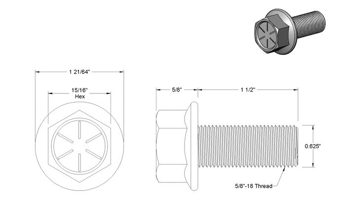 Steering head, Bolt, 5/8-18 X 1-1/2, hex flange hd, Black Phospate steel