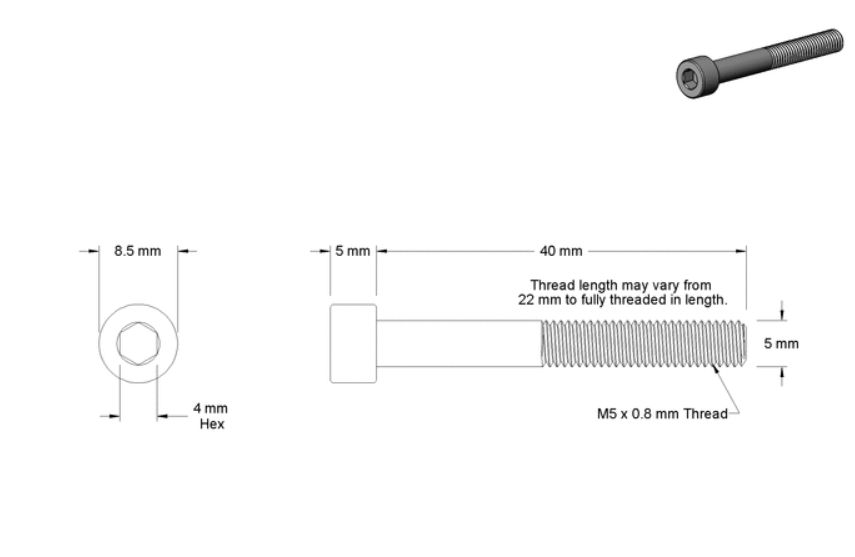 HANDLEBARS & HAND CONTROLS, Screw, M5 X 40 SHCS (black oxide ). Sold per piece. ( 1x )
