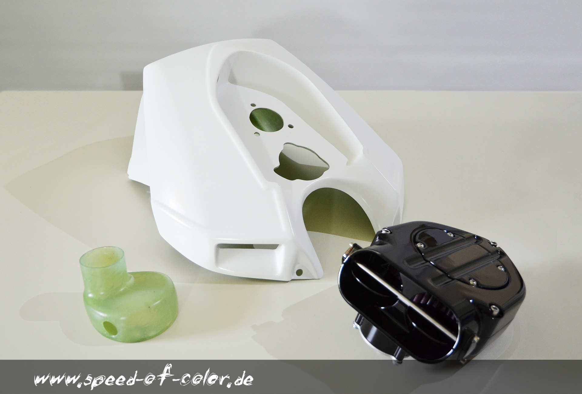 The SOC airbox cover is made of fiberglass material and is separately in the kit incl. air intake duct