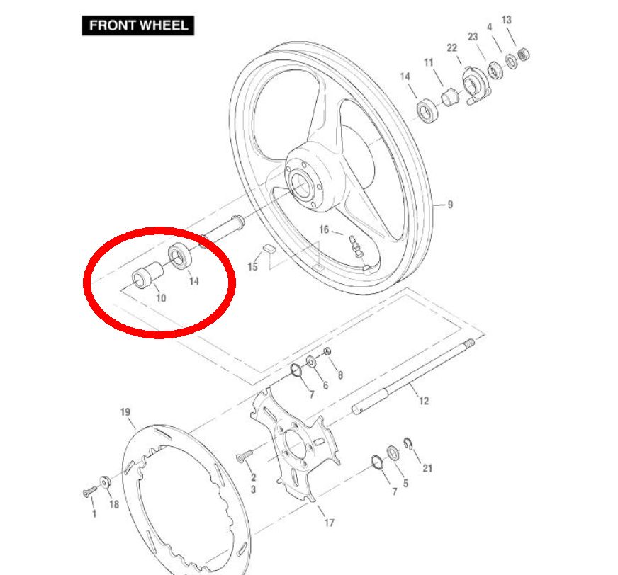 Buell, Spacer Front axle, right side , tube frame Fits all tube frame models. ( 1x )