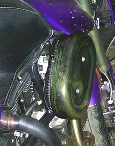 HurricaneFlow Air Cleaner with 2' element, 95-96 Buell S2 Uses stock cover and carb support bracket. If you own a Buell S2, you already know what a special bike it is. Chances are, you also know what a problem the stock air cleaner is. The factory plastic back plate is subject to warpage and cracking, and that lets harmful dirt go straight into your motor. The HurricaneFlow not only fixes this problem nicely, but it incorporates the exclusive HurricaneFlow radius ring that increases intake velocity and eliminates turbulence. Uses your stock carbon fiber cover. Your S2 deserves a HurricaneFlow! The S2 HurricaneFlow is offered with a 2' element only, as the 3' element can cause interference problems with the tank cover and the fairing lowers.