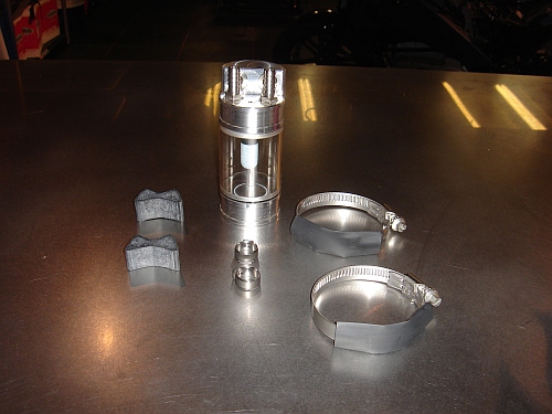 Twin Motorcycles, Oil Catch Can. We proudly present a new oil catch can for the old Tuber Buell models and all Sportster and XR1200 models.