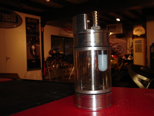 We looked at the different options that are currently on the market, but they where not the solution we where searching for. We wanted to have: - nice design - multifunctional in positions - easy view of the oil level - Several mounting options, horizontal or vertical - A good breathing flow, to prevent crankcase pressure build up And not leaving oil stains every where you park your bike after a ride with a free breathing system. Key features off our catch can: - Very easy to see the amount off oil collected, - Horizontal or vertical mounting possible, - The hose connectors switchable for a nicer routing off the hoses, - Free breathing system, with a oil separator, - Position off the drain plug can be turned 360 deg. For the most optimal position After testing, it's ready.