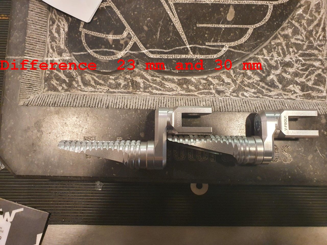 The 30 mm offset plate and the footrest can be individually adjusted in 8 positions using the vario joint. with little lowered position , just a little  more leg room