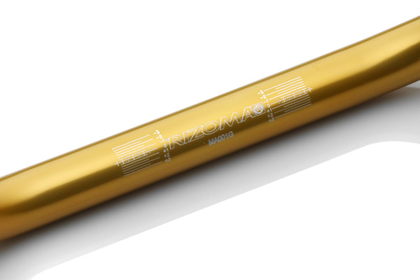this is why you could change your steel handlebar. Color is the other one. Superb aluminium handlebars from Rizoma. diameter 22mm ( 7/8 ) Colour Gold. Dimensions: Width 720mm. Rise: 60mm. Pullback 80mm