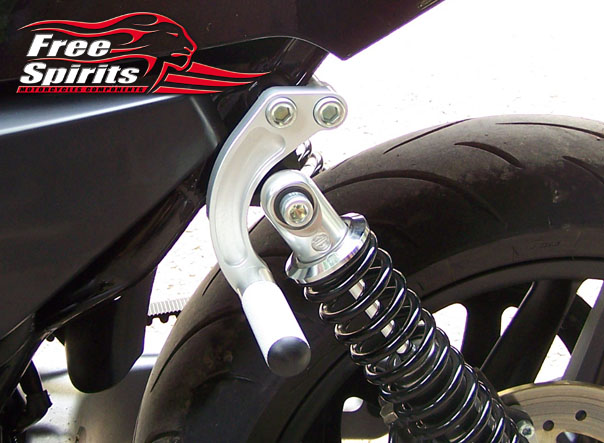 This CNC machined billet aluminium footrest kit is designed for use in conjunction with the Suspension riser kit (which requires the removal of the stock passenger footrests). This kit, attaches to the redundant top suspension mount once the suspension risers have been fitted. The kit includes footrest hangers (anodised black or silver), solid mount aluminium knurled footpegs and, on the right side a new exhaust bracket designed to replace the original. Easily fitted, this kit is the answer for those that want the improved handling of the riser kit but still want to carry a passenger occasionally.