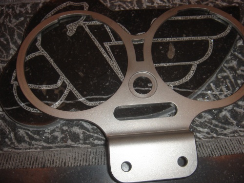 With this special stainless steel instrument panel plates you can set the original round instruments nearly 40 mm lower and approx. 10 mm nearer to the handle bar. The speedometer and revolution counter are on one level. The ignition lock is not in the plate anymore and could be fixed separately. We use inox with dull finish This plate can also be used for older M2 models to add a revolution counter. It fits on all instrument panels from year 1999 on.