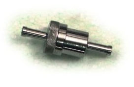 Fuel filter, 1/4 hose connection ( stock M2/S3 ) Chrome plated aluminium inline fuel filter, complete with bronze filter element,