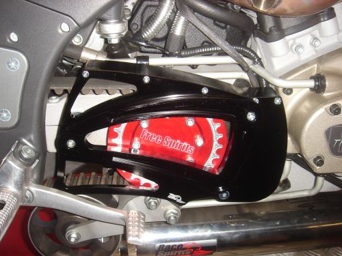 So you have decided to get rid of the bulky front pulley cover, or you want to do what we did and cut some holes in it to reveal the pulley underneath? Problem is, the pulley is rusty and not very attractive. Here is the solution. This pulley cover fits using the two pulley locking bolts and covers the rusty stock pulley face. Now anodised in red with stainless steel allen bolt deatiling this certainly looks 100% better.