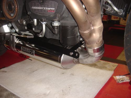 We where also able to get a little more power out of it because we redesigned the front header. We also designed it because you will never have to refill it. and the front mounting is way better then any other system in the market. We also developed our own unbreakable exhaust strap for the rear they will not brake but stretch.