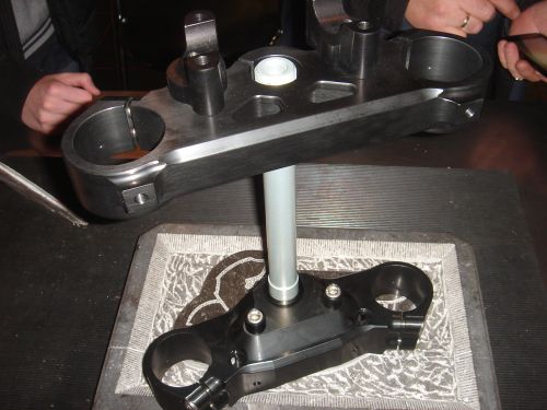 This is the Twin Motorcycles 1125 CR Triple Tree Kit upgrade Kit. It is made out of aluminium and will fit with the original Front Fork.
