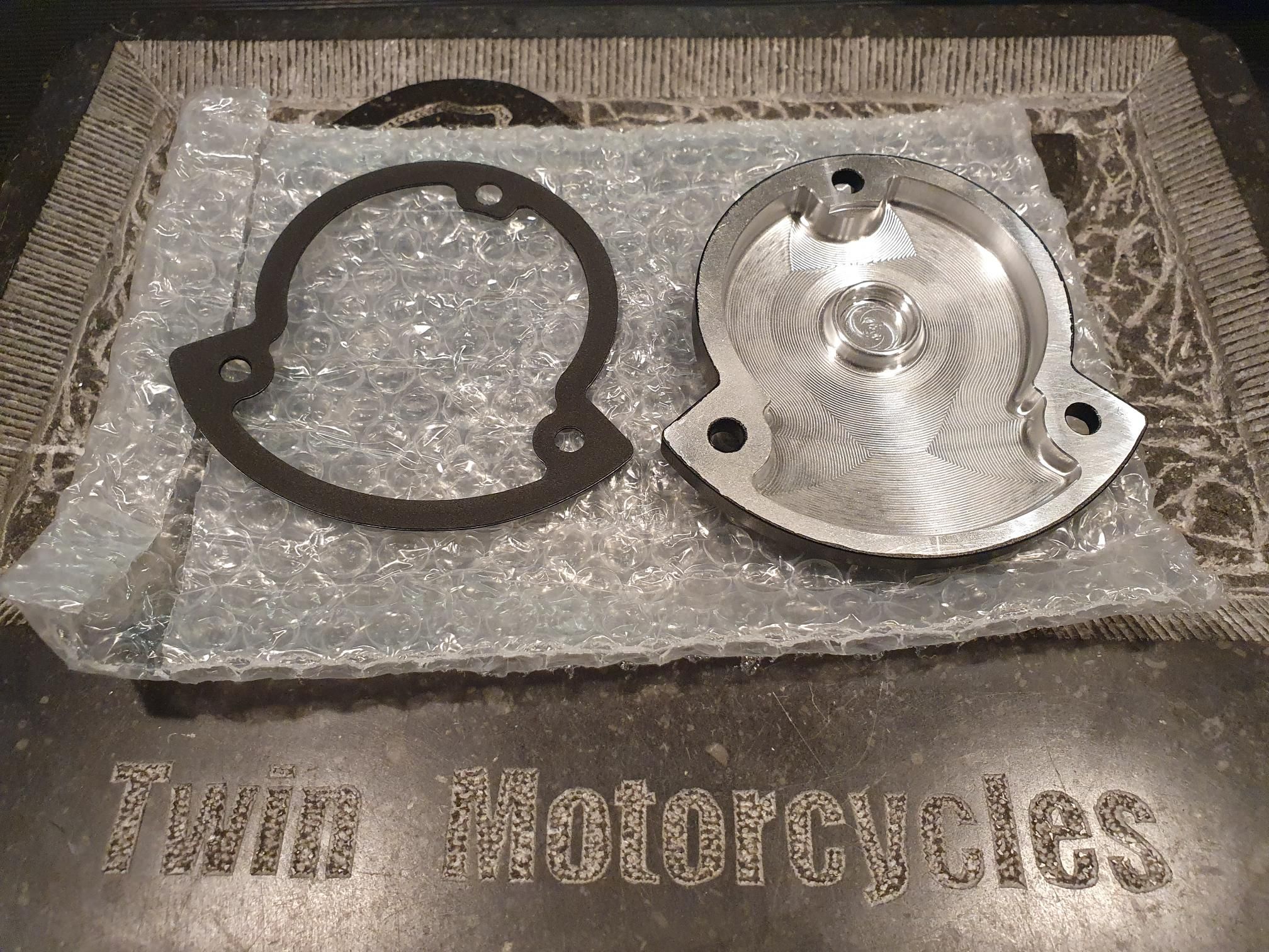 replaces the old 2002-2003 plastic cover for this stronger aluminium version made by Twin Motorcycles.