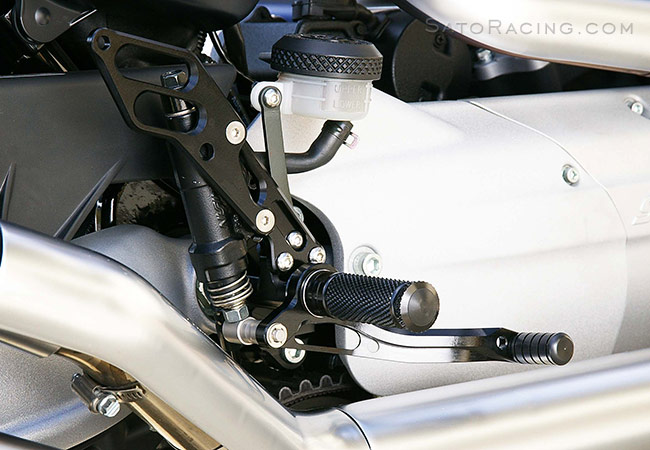 Rear set is made from high grade billet aluminum with your choice of deep Black or Silver (clear metal) anodized finish. Select from 5 adjustable foot peg positions that bring your feet up and back compared to stock. These Rear Sets can be switched to reverse (GP style) shift pattern by rotating the change arm.