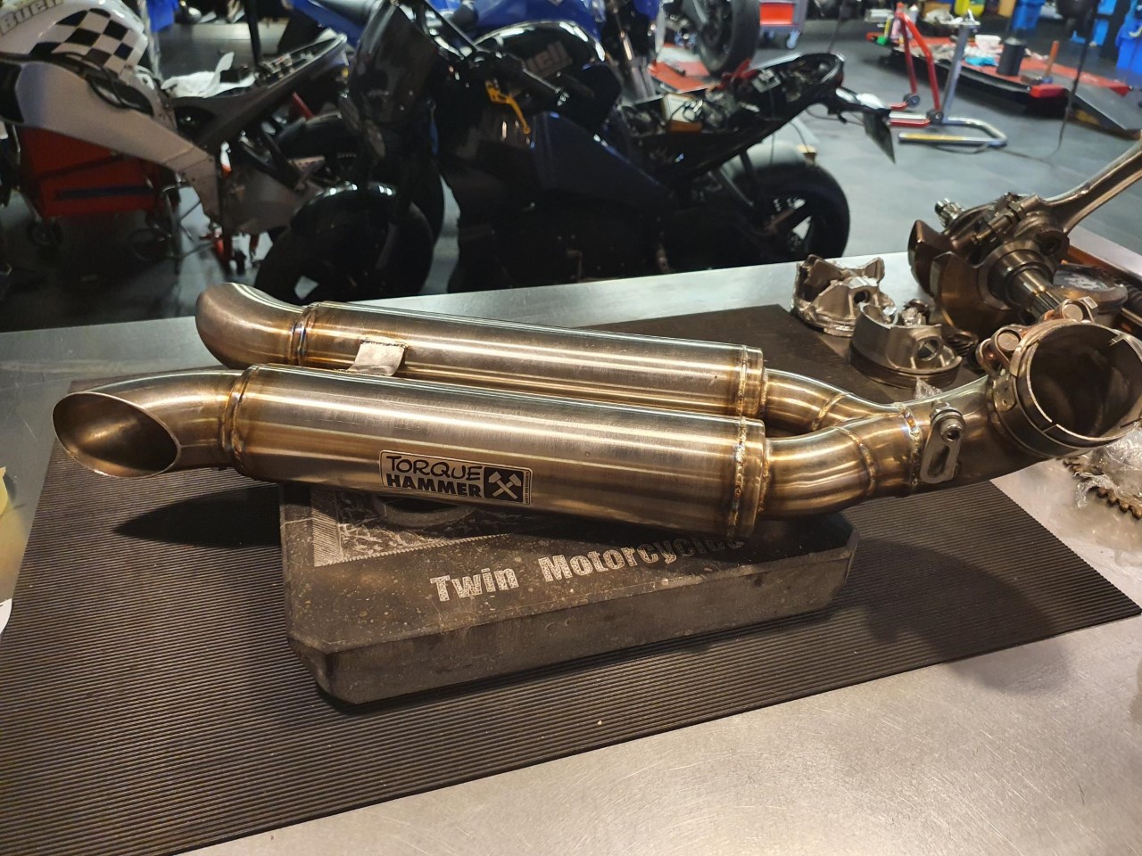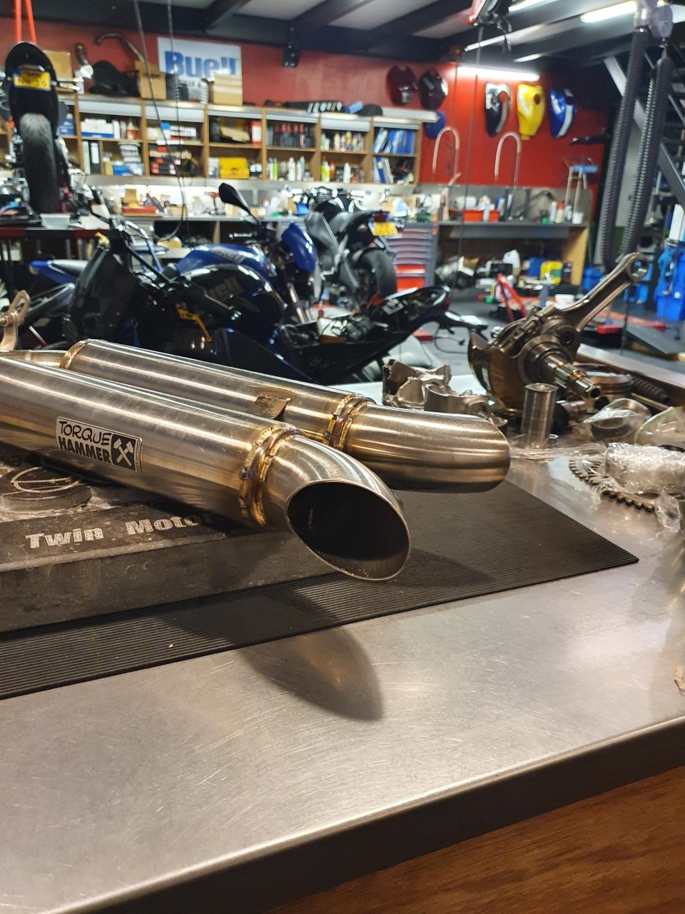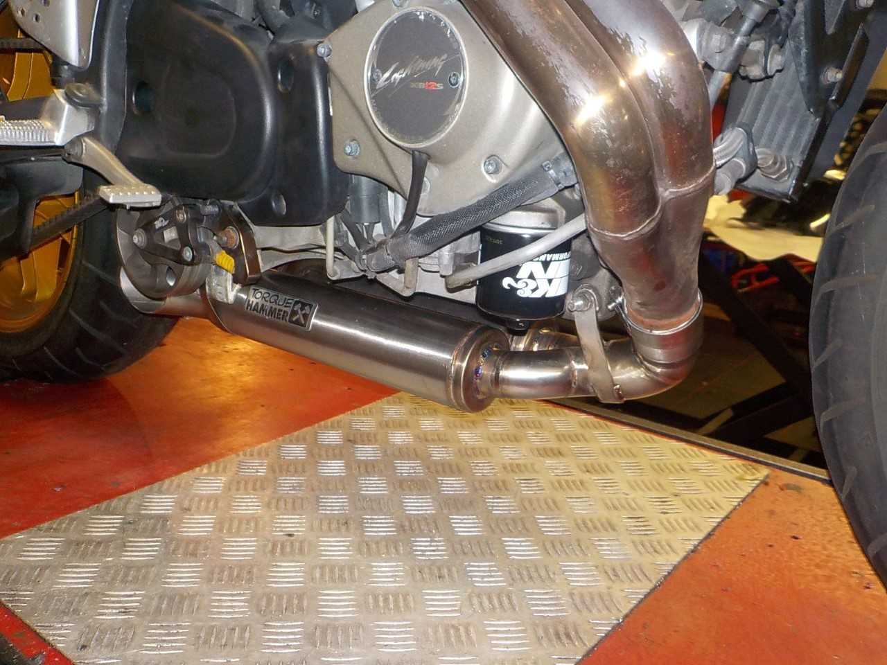 Torque Hammer High Performance Dual outlet exhaust with Db-killer. This exhaust has a very deep and dark loud sound. We developed this exhaust because many customers asked us for a dual outlet exhaust with a deep and dark sound and with a complete flat torque curve and High HP result, well here we come. The exhaust is made from High quality stainless steel.