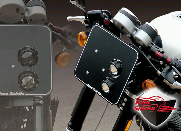 XR1200 and XR1200X 2008 and up competition style headlight mask/number board with solid supports, EU approved projector style lights, aluminum alloy 'number plate' board.