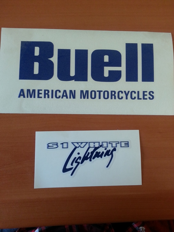 Twin Motorcycles Buell S1 WL Blue flyscreen and tail and fuel tank decall Blue sold as a set. 2 tank decals and 2 front and rear stickers. OEM dimensions.