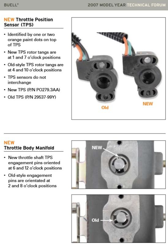 for the model year 2007 the position of the throttle shaft pins was changed from horizontal to vertical